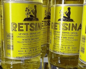 Η μοναδική γεύση της λέγεται ότι έχει προέλθει από την πρακτική της σφράγισης των αμφορέων, με ρετσίνι από πεύκα κατά τους αρχαίους χρόνους. Πριν από την εφεύρεση των στεγανών μπουκαλιών γυαλιού, το οξυγόνο αλλοίωνε τα κρασιά πολύ γρήγορα. Για να στεγανοποιήσουν το στόμιο, οι αρχαίοι εφεύραν την χρήση της ρετσίνας πεύκου, η οποία συγχρόνως εμπλούτιζε με την πάροδο του χρόνου το κρασί με το χαρακτηριστικό της άρωμα. Αργότερα εφευρέθηκε και η πρακτική της προσθήκης της ρετσίνας στο μούστο για τον αρωματισμό του κρασιού και την καλύτερη συντήρησή του.