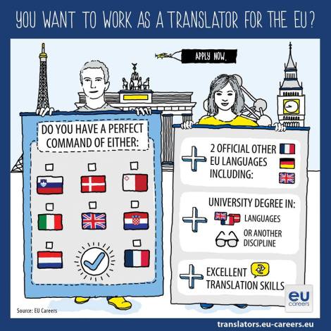 In fact, is looking for talented, motivated translators from across Europe to work for the EU Institutions in the following languages: Danish, English, French, Italian, Maltese, Dutch, Slovenian.