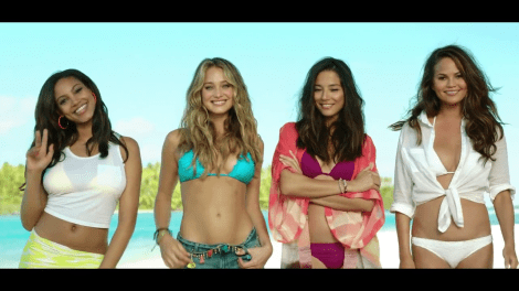 The models include Ariel Meredith, Chrissy Teigen, Hannah Davis and Jessica Gomes. Christie Brinkley makes a cameo.