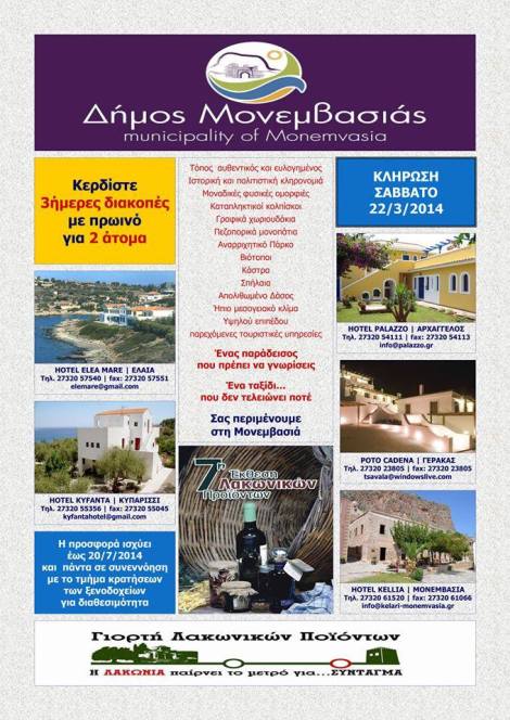 Επισκεφθείτε το περίπτερο του Δήμου Μονεμβασίας στην Έκθεση Λακωνικών Προϊόντων στο Μετρό του Συντάγματος, μάθετε τα πάντα για την περιοχή και κερδίστε δωρεάν τριήμερες αποδράσεις συμμετέχοντας στην κλήρωση!