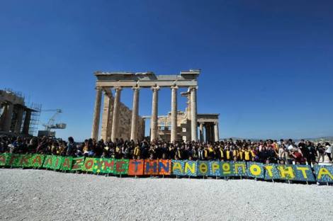Την Παρασκευή, 21 Μαρτίου,Παγκόσμια Ημέρα κατά του ρατσισμού, με το σύνθημα «Αγκαλιάζουμε την Ακρόπολη, Αγκαλιάζουμε τη Δημοκρατία, Αγκαλιάζουμε την Ανθρωπότητα» παιδιά όλων των εθνικοτήτων και ΑΜΕΑ, σχημάτισαν μία ανθρώπινη αλυσίδα που αγκάλιασε το μνημείο και σκόρπισαν στον ουρανό 2,000 πολύχρωμα μπαλόνια, στέλνοντας μήνυμα ειρηνικής συνύπαρξης, χωρίς διακρίσεις.