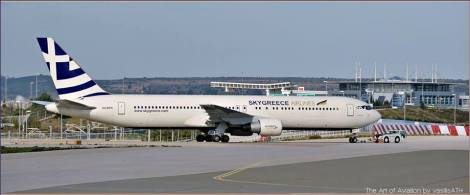 Το πρώτο Αεροσκάφος της SkyGreece Αερογραμμές Α.Ε. είναι Boeing 767-300 ER, με το όνομα ΤΑΞΙΑΡΧΗΣ (274 θέσεων) που έχει ως διακριτικό την Ελληνική Σημαία, που μαζί με την Ελληνική φιλοξενία, προσδοκά να εισέλθει δυναμικά στις Υπερατλαντικές πτήσεις, ενώ είναι ήδη στη διαδικασία απόκτησης του δεύτερου αεροσκάφους.
