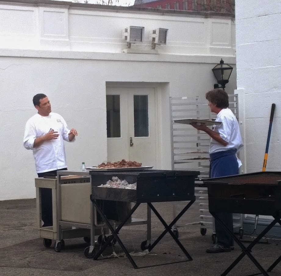 | A White House assistant chef grills lamb chops beneath the North Portico |