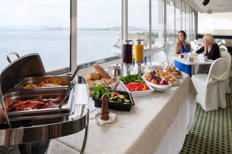 Ο χώρος του πρωινού είναι στον 7ο όροφο με χρέωση €13 το άτομο και σερβίρεται καθημερινά από 07.30-10.30πμ.