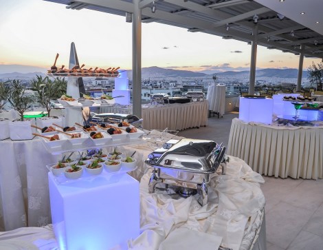 Από νωρίς το απόγευμα, οι καλεσμένοι είχαν την ευκαιρία να απολαύσουν το ηλιοβασίλεμα με θέα το βράχο της Ακρόπολης και το λόφου του Λυκαβηττού.