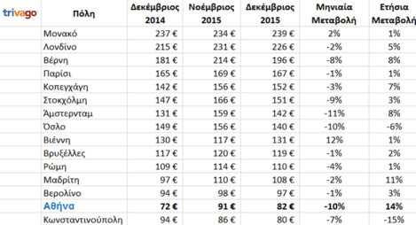 *Οι μέσες τιμές προκύπτουν από τη βάση δεδομένων της trivago έπειτα από τη σύγκριση τιμών από περισσότερα από 200 διαφορετικά online booking sites.