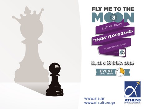Ξεκινώντας από την Παρασκευή 11 Δεκεμβρίου (με αφορμή τον εορτασμό της Παγκόσμιας Ημέρας του Παιδιού) και για τρεις ημέρες έως και την Κυριακή 13 Δεκεμβρίου, διακεκριμένοι σκακιστές και σκακιστικοί σύλλογοι θα μας μυήσουν στο μαγικό κόσμο και στις ιστορικές στιγμές του αθλήματος, προσκαλώντας το κοινό να συμμετέχει στη μεγάλη επιδαπέδια σκακιέρα του αεροδρομίου, παίζοντας με στόχο το…check mate, λίγο πριν ή μετά το check in!