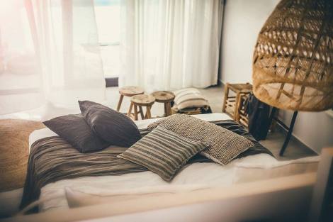 εσωτερικό του ξενοδοχείου με μια ατμόσφαιρα γεμάτη μποέμ χαρακτήρα. Η υφή στις επιφάνειες