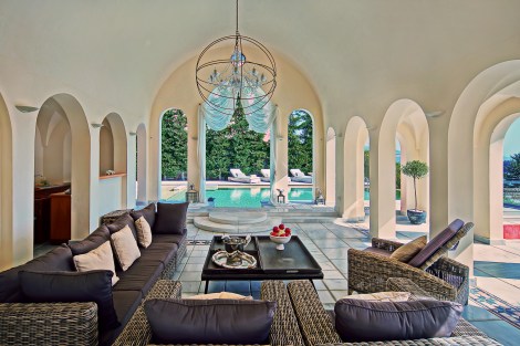 πισίνας με το γραφικό pool house. Απολαύστε μια μοναδική εμπειρία αναζωογόνησης κάνοντας μια βουτιά στην πισίνα και χαλαρώστε στο υδρομασάζ με θέα το Ιόνιο πέλαγος.