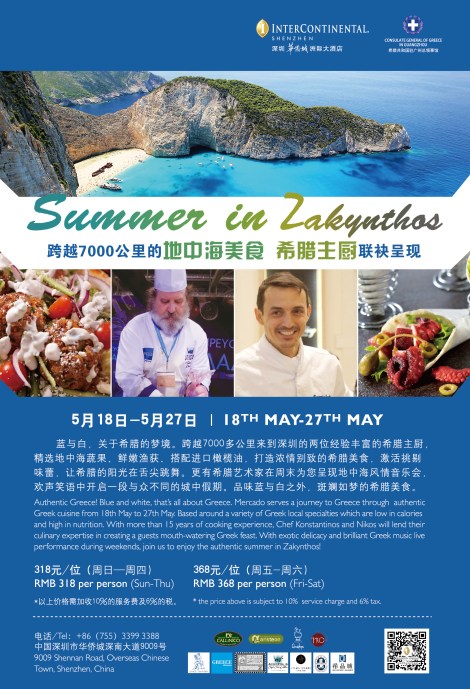 Οι πόλεις Guangzhou και Shenzhen δύο από τις μεγαλύτερες πόλεις στην Νότια Κίνα και η όμορφη πόλη Xiamen από τα μεγαλύτερα εμπορικά και ναυτιλιακά κέντρα της Νότιας Κίνας θα φιλοξενήσουν και θα παρουσιάσουν για 2 εβδομάδες σε κινέζους πολίτες, Μουσική, παραδοσιακούς χορούς και Ζακυνθινή κουζίνα.