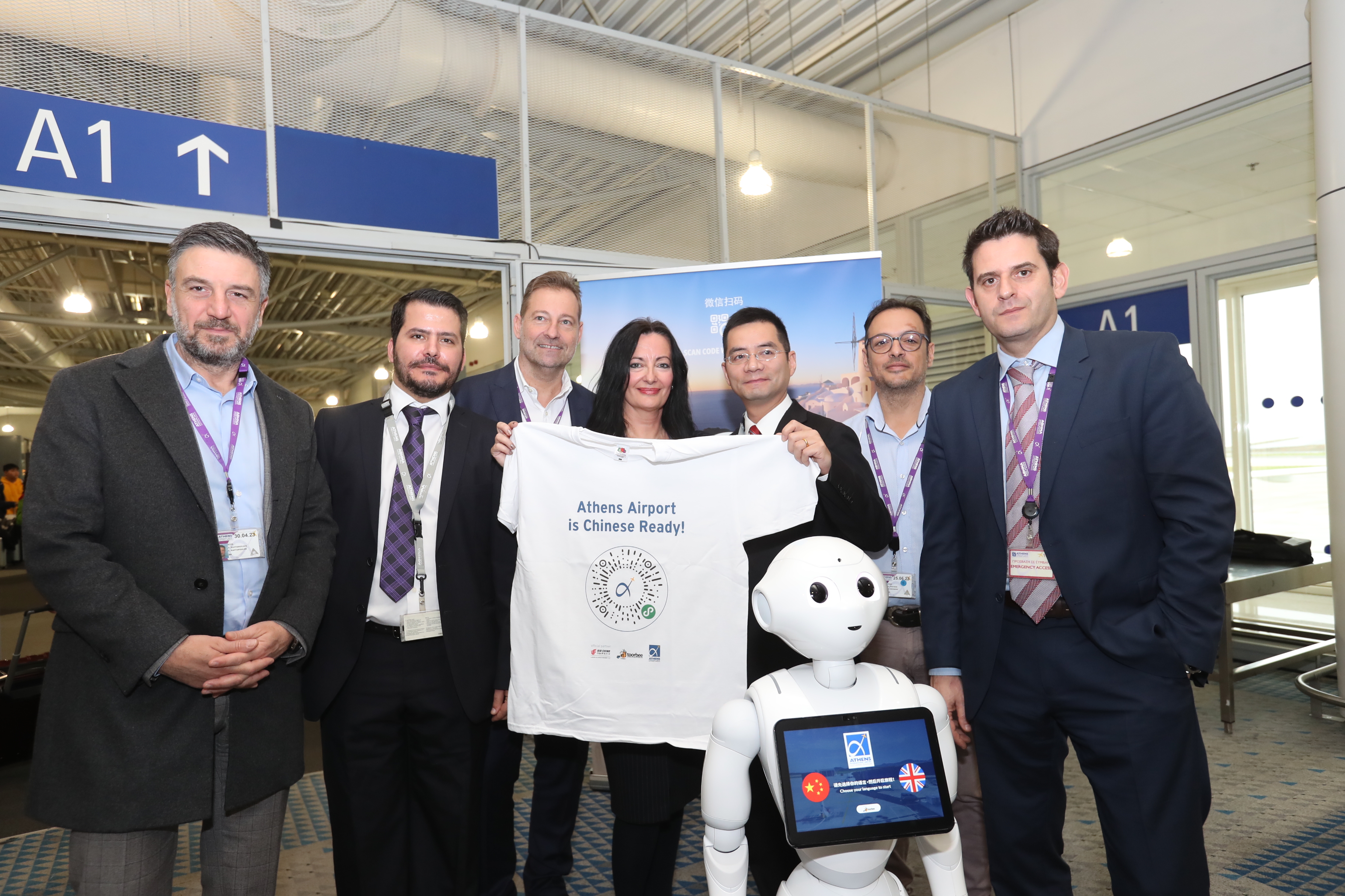 Η ομάδα του αεροδρομίου, της Toorbee και της AirChina, με τον Pepper, το ρομπότ του αεροδρομίου να «κλέβει την παράσταση»