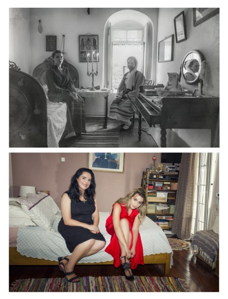 ‘Ετσι µελετώντας παλιούς φωτογράφους δηµιουργώ δύο φωτογραφίες από κάθε φωτογραφιζόµενο πρόσωπο, οικογένεια ή παρέα: Φωτογραφίζω αυτά τα πρόσωπα σήμερα σε καθημερινές τους στιγμές και έπειτα τα ίδια πρόσωπα τα μεταφέρω στο παρελθόν, τα σκηνοθετώ, τα ντύνω ανάλογα, τα μακιγιάρω και τα φωτογραφίζω ξανά µε βάση το πως έστηναν τότε οι φωτογράφοι τις φωτογραφίες τους. Έτσι τα σημερινά πρόσωπα γίνονται ζωντανοί φορείς της μνήμης του τόπου τους. Με αυτήν µου την ιδέα έχω είδη δηµιουργήσει 37 έργα, για τον τόπο μου, την Καστοριά. Στην έκθεση στην Μύκονο θα παρουσιαστούν και 4 έργα που έκανα ειδικά για αυτή την έκθεση εμπνεόμενη από την παράδοση της Μυκόνου κατά την δεκαετία του ‘50. Επόμενο πρότζεκτ μου είναι να δημιουργήσω μία σειρά φωτογραφιών αξιοποιώντας την μεγάλη παράδοση του πολιτισμού της Μυκόνου, σε συνεργασία με το Λαογραφικό Μουσείο Μυκόνου».