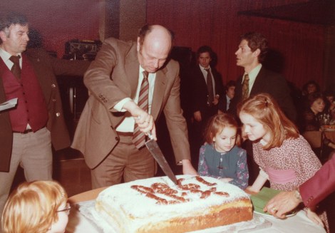 Ο Αντώνης Μουσαμάς με τις κόρες του, Εμμανουέλα και Αρετή Μουσαμά καλωσορίζοντας το νέο τότε έτος, 1980 με την κοπή της Πρώτης Πρωτοχρονιάτικης Πίτας του τότε Holiday Inn