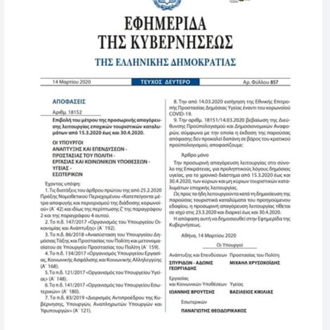 Επιβολή του μέτρου της προσωρινής απαγόρευσης λειτουργίας εποχικών τουριστικών καταλυμάτων από 15 Μαρτίου 2020 έως 30 Απριλίου 2020 14 Μαρτίου, 2020 · by Business Travel blog · in ΞΕΝΟΔΟΧΕΙΑ,ΤΟΥΡΙΣΜΟΣ. · Κοινοποιήστε: Κάνε κλικ για να μοιραστείς στο X(Ανοίγει σε νέο παράθυρο) Χ Πατήστε για κοινοποίηση στο Facebook(Ανοίγει σε νέο παράθυρο) Facebook Κλικ για κοινοποίηση στο LinkedIn(Ανοίγει σε νέο παράθυρο) LinkedIn Κλικ για κοινοποίηση στο Pinterest(Ανοίγει σε νέο παράθυρο) Pinterest Μου αρέσει! Φόρτωση... Σχετικά