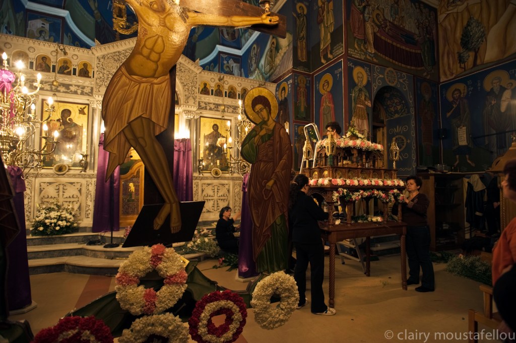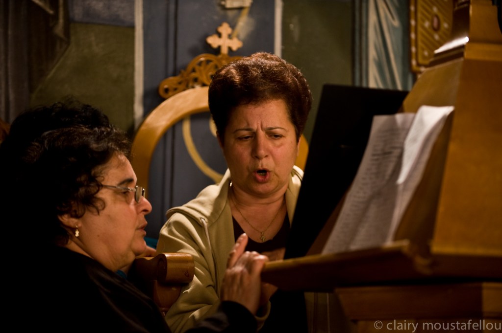 Αξέχαστη ωστόσο στιγμή είναι και όταν παρακολούθησα Μεγάλη Πέμπτη τον στολισμό, από γυναίκες της Μάρπησσας, του επιταφίου και ακούγαμε τη Μαρία να ψέλνει καθώς ασχολείται ακατάπαυστα με τη βυζαντινή μουσική. Εξαίσια αίσθηση όπως άλλωστε και όταν την ακούς να απαγγέλλει τους στίχους των εγκωμίων κατά την περιφορά του επιταφίου και να ακολουθεί η χορωδία ψέλνοντας.